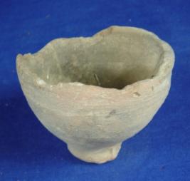 | Description / विवरण | Terracotta, coarse vessel, probably a bowl, with featureless rim, round body and footed, circular and flat base which is narrow. It is ill fired and the parts of the rim are broken. |