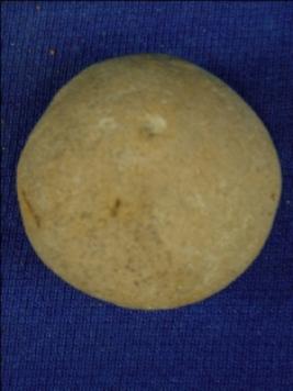 | Description / विवरण | Terracotta bead, surfaces are raised up to centre and there is a perforated hole. |
