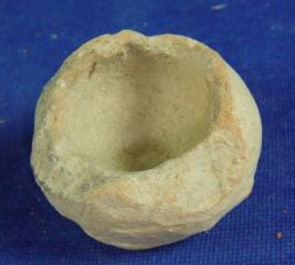 | Description / विवरण | Terracotta, coarse vessel, probably tiny pot with round body and circular flat base. Rim and part of the upper body are broken. |