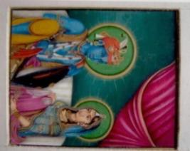 | Description / विवरण | The painting depicts a Ram and Sita seated on a white cushioned sofa with green halo behind. Ram is painted blue. The background is green with a part of maroon curtain hanging. |