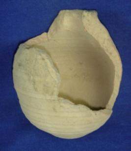 | Description / विवरण | Plain, coarse terracotta vessel- pot with broken rim, bulging body having close striation marks, round base and having a perforated hole in the centre, the upper part of the body is partly broken. Clay incrustation all over. |