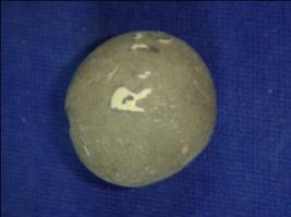 | Description / विवरण | Plain round, terracotta bead, with a small perforated hole in the centre. There are cracks and broken at one side. |