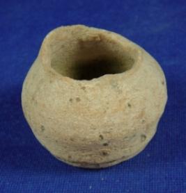 | Description / विवरण | Plain, coarse terracotta vessel - pot with broken rim, bulbous body and flat circular base. |