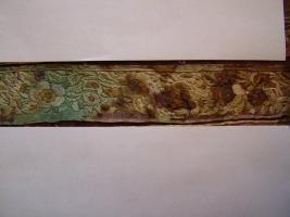 | Description / विवरण | Silk trimming, embroidered, blue ground. Pattern-flowers of white, red and yellow spots and white long leaves. |