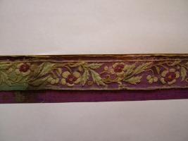 | Description / विवरण | Silk trimming, embroidered, blue ground. Pattern-white flowers and leaves with white birds having red, green and yellow wings. |