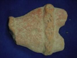 | Description / विवरण | Terracotta female figurine, only the waist and abdomen is visible. The naval is seen and she is wearing a girdle having some circular floral designs. |