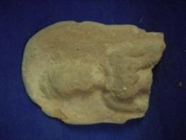 | Description / विवरण | Terracotta female figurine, only the upper part of the body is visible in a low relief. The figurine has a head gear and wearing a necklace. The facial features are not prominent. Hands are partly seen. |