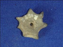 | Description / विवरण | Terracotta bead in circular shape. The rim has pinched serrated edge. There is a hole across the body. |