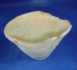 | Description / विवरण | Terracotta bowl, ill fired,broad mouth which is tapering towards its flat circular base. Body contain close striation marks. The rim is partially broken. |