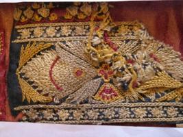 | Description / विवरण | Silk trimming embroidered black ground. Fish pattern, but in damaged condition. |