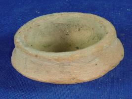 | Description / विवरण | Terracotta Bowl with featureless rim, broad mouth, flayed body having incised circular lines and carination on the middle, and with string marks on the base. Earthly incrustation all over. |