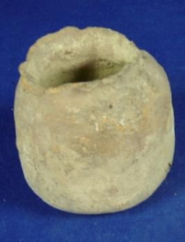 | Description / विवरण | Crudely finished, hand made terracotta pot, broader at the base, cylindrical in shape, finger impression on the body and narrow at the base. |