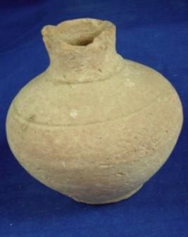 | Description / विवरण | Ill fired, Coarse terracotta pot, circular flat base, bulbous body high narrow neck and broken averted rim. Circular incised lines are seen on the upper portion of body. |