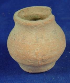 | Description / विवरण | Coarse, terracotta pot with circular flat base, bulbous body, broad mouth and averted rim. Earthly incrustation all over. |