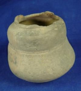 | Description / विवरण | Coarse, ill fired, terracotta pot having circular base, double lota body, missing neck and rim. |