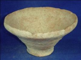 | Description / विवरण | Terracotta bowl with a broad mouth, thin rim and a narrow flat base without any decoration. It has rough edged rim. It was probably used as a utensil. |