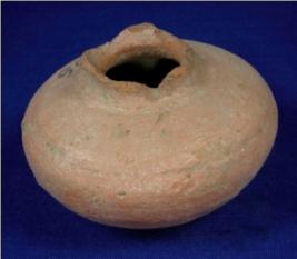 | Description / विवरण | Terracotta pot having narrow broken neck and flat circular base, Striation marks are seen near the neck. |