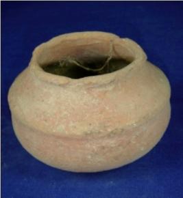 | Description / विवरण | Terracotta pot in round shape, cylindrical body, broad mouth and thick averted rim. Edges of rim are irregular. The body is carinated in middle portion. |