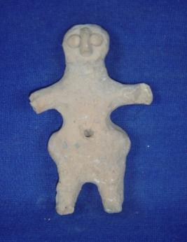 | Description / विवरण | Terracotta human figurine of a standing male with spread hands. Naval point is made by incised hole, eyes and nose are made by appliqued pellets. It is very crudely finished. |