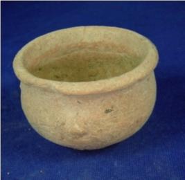 | Description / विवरण | Terracotta small pot of round shape on circular flat base with broad mouth and averted rim. |