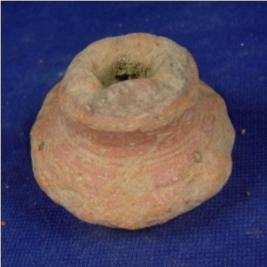 | Description / विवरण | Terracotta small pot of round circular shape with circular base and elongated neck. Striation marks are seen on the neck, incised circles around neck portion. The rim is broken The surface of the pot is rubbed off. |