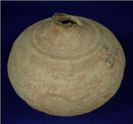 | Description / विवरण | Terracotta vessel - pot of baked clay with spherical body, round and narrow base and a very narrow neck with small opening. The waist has carination. |