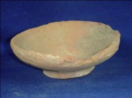 | Description / विवरण | Terracotta bowl with a broad mouth, thick rim and a narrow flat base without any decoration. The inner surface is smoother then the outer surface. The bowl was probably used as utensils. |