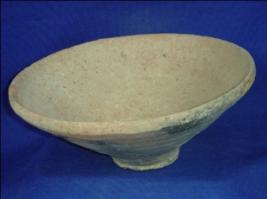 | Description / विवरण | Terracotta bowl with a broad mouth, thick rim and a narrow flat base without any decoration but inner side is smooth then outer surface, was probably used as utensil. |