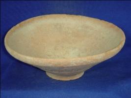 | Description / विवरण | Terracotta bowl with a broad mouth thick rim and a circular narrow flat base without any decoration. The wheel marks are seen in the outer surface, the inner surface is plain. This bowl may be used for household works. |