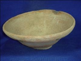 | Description / विवरण | Terracotta bowl with a broad mouth, thick rim, and circular narrow flat base without any decoration. The inner surface is plain than the outer. |