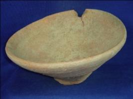 | Description / विवरण | Terracotta bowl with a broad mouth, thick rim, and a narrow circular flat base without any decoration. The wheel marks are seen in outer side while the inner surface is plain. The bowl is very crudely finished which may be used as an utensil. |