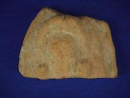 | Description / विवरण | Terracotta human head in low relief, which is mutilated, wearing headgear and round earrings. |