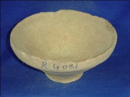 | Description / विवरण | Terracotta bowl with a broad mouth, thick rim and a narrow flat circular base without any decoration. The wheel marks are seen in the outer side while the inner surface is plain. This bowl may be used as a utensil. |
