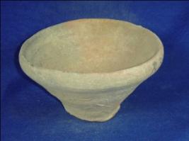 | Description / विवरण | Terracotta bowl with a broad mouth, thick rim, and a narrow, flat circular base without any decoration. The wheel marks are seen in the inner side and outer surface is rough. This may be used as a utensil. |