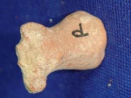 | Description / विवरण | Small terracotta human shaped dice, having the right arm raised up and a cylindrical body with a circular base. The head and left arm are broken. |