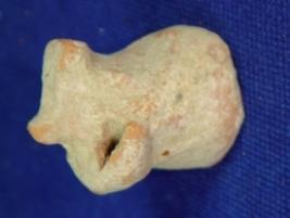 | Description / विवरण | Small terracotta human shaped dice having a small pinched head, right hand on the chest and a cylindrical body. There is a hole in the right shoulder. |