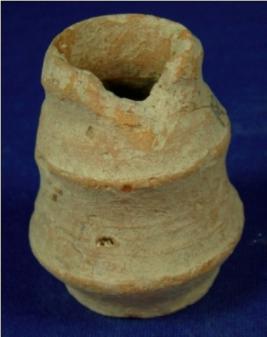 | Description / विवरण | Cylindrical terracotta vessel having flat circular base, bands of design on double lota body. The mouth is without neck and have thick rim. It is having hole at base. |