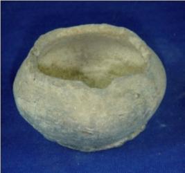| Description / विवरण | Small plain, terracotta vessel - pot, with broad mouth, round body and broad, flat rim. The rim is partly broken. |