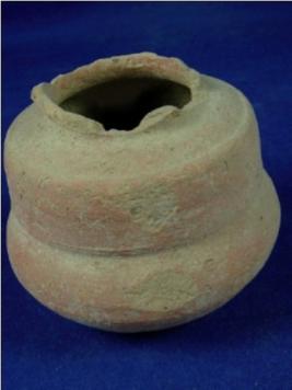 | Description / विवरण | Plain, double lota terracotta bowl, with a broad mouth and circular base. Upper part of the body is cylindrical and the lower body is round. The mouth is broken. |