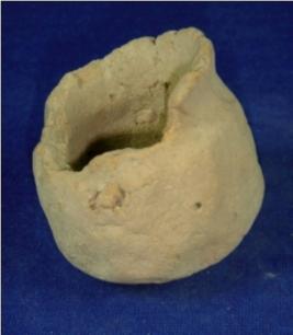 | Description / विवरण | Plain terracotta vessel - small pot, with broad mouth, neck, cylindrical body and round base. It is handmade, with crude finishing. The mouth is partly broken. |