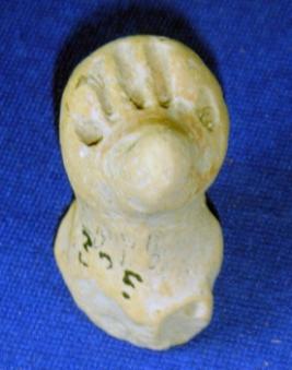 | Description / विवरण | Terracotta dice in shape of bird, having incised eyes and protruding beak. Incised lines on the forehead. Some part of base is broken. |
