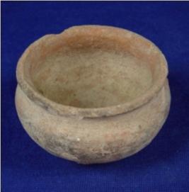 | Description / विवरण | Small plain, terracotta vessel - pot, with broad mouth, averted rim, bulbous body and broad, flat and circular base. The mouth is almost as broad as the body. It is a coarse pottery. |
