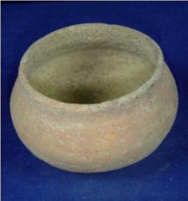 | Description / विवरण | Terracotta pot in round shape with broad mouth and rim. Wheel marks in the inner side are visible. Cracks are there on the outer surface. |