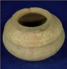 | Description / विवरण | Terracotta pot in round shape with narrow neck and thick averted rim. The body is carinated at waist. The pottery has a shining. |