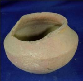 | Description / विवरण | Plain terracotta pot, with broad mouth. The lower body is circular in shape and it has averted rim. The upper portion is broken at one side. The body is carinated at the middle. |