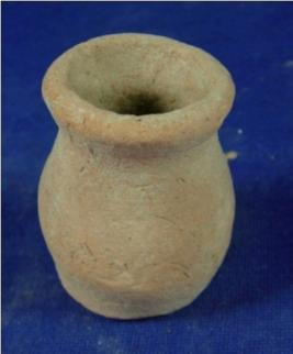 | Description / विवरण | Small plain, terracotta jar, with a broad mouth, short neck, round body and flat base. |