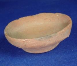 | Description / विवरण | Ill fired, coarse, shallow, terracotta lamp, with circular and flat base, flayered body with featureless rim. Earthly incrustation is partially seen over the body. |