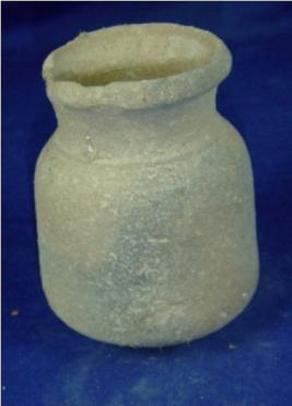 | Description / विवरण | Plain terracotta jar, with averted rim, broad mouth, long neck, cylindrical body and round base. The body is narrower near the neck. |