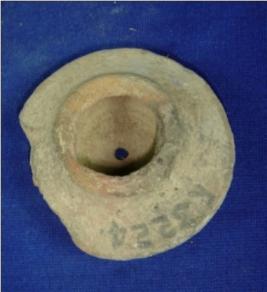 | Description / विवरण | Small plain, terracotta Pot, with slightly broad mouth, flat, circular body and slightly round base. It has a perforated hole on the base. The body is broken at one side. |