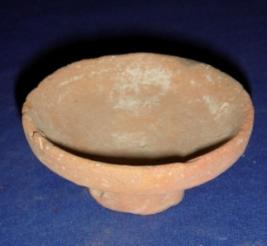 | Description / विवरण | Coarse, ill fired, shallow, terracotta lamp with footed circular base, flayered body rim of which is slightly broken. A transverse perforation is at the base, which was probably meant to put several lamp in a row. |